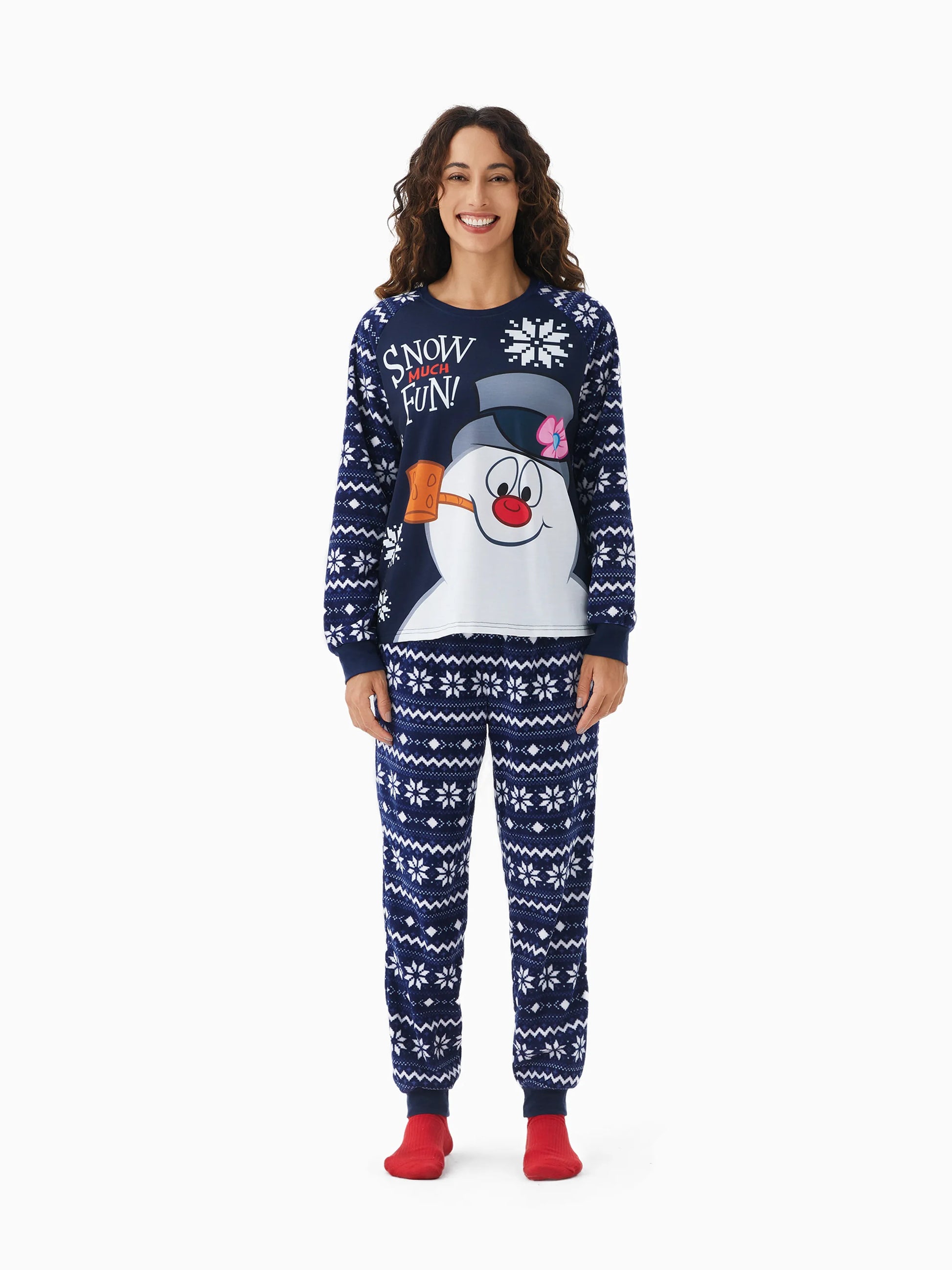 Celebre as festas com estilo com este conjunto de pijamas coordenados da família, oficialmente licenciado pela Warner Brothers, com o Frosty, o boneco de neve.